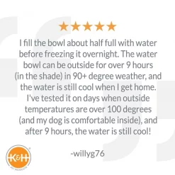 Water is best served cold, and the K&H Pet Products Coolin’ Bowl Dog & Cat Bowl allows you to do just that. Using an innovative inner gel core and double-walled insulation, it can actually keep water refreshing and cool for up to 15 hours at a time! Itโs perfect for pet parents that work and canโt add ice throughout the day, and itโs also great for outdoor activities like trips to the beach or dog park. Simply fill the inner core with water, which will activate the cooling gel crystals, and then freeze overnight. For bonus cooling, try filling it with an inch of water before the nightly freezeโthat layer of ice in the morning will add to the icy coolness!