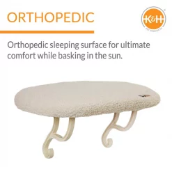 The K&H Pet Products Kitty Sill gives your cat an elevated spot where she can keep an eye on the neighborhood or settle down for a nap. Cats love being high off the ground, and this sturdy sill makes the perfect perch. No tools are necessary for installation when using the provided fuzzy fastener-style fasteners. However, you can use the screws included for a more permanent attachment. The solid design is made with pet safety in mind. It includes a soft, machine-washable fleece cover and a thick, comfy orthopedic foam. The adjustable brackets fit any window sill and it holds up to 40 pounds.