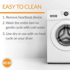 - The heartbeat device can be removed from the top pocket so you can put the pad in the washing machine, but your puppy is not meant to reach it.