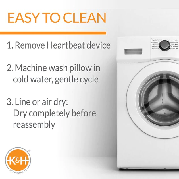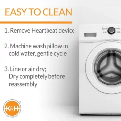 Used to calm kittens and reduce stress caused by fireworks, thunderstorms, separation anxiety and more. Helps pets transition to their new home. Indoor use only. Not intended for use by children. Pets can chew items unexpectedly. Remove toy immediately if torn or damaged. Seek veterinary attention if any material is ingested.; WASH/CARE INSTRUCTIONS: Remove heartbeat device. Pillow can be machine washed. Machine wash gentle, air dry.