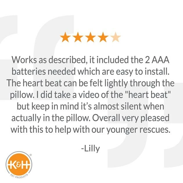 New kitty coming home? Make the transition smoother with K&H Pet Products Mother’s Heartbeat Kitty Heart Pillow. Combining the calming sounds and feel of a mother’s heartbeat with a soft pillow, this set creates a cozy experience for your feline friend. Each pillow includes a heartbeat device that installs into the zippered pocket easily, replicating the estimated heart beats per minute of your furbaby’s parent.