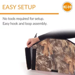 Your feline friend can enjoy dining al fresco with the K&H Pet Products Outdoor Dining Room Cat Furniture. This cat dining room helps protect your kittyโs food and water from rain, snow and dirt. Itโs the purr-fect size to accommodate food and water bowls. Just place your catโs bowls inside the dining room and watch his enjoy her food from his own special space. Plus, no tools are required to set up this cat furnitureโyou can simply assemble it with hook and loop!