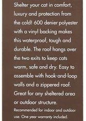 - Excellent use in barns, garages, porches or anywhere an outdoor cat needs additional warmth and protection. Can also be used indoors!