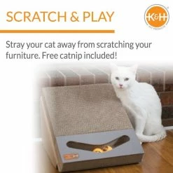 Your cat will be mesmerized by the K&H Pet Products Scratch, Ramp & Track Cardboard Scratcher Interactive Cat Toy. This toy comes to life with a large scratching surface that appeals to your catโs instinct to scratch and claw, while the moving balls satisfy his inner hunterโequaling hours of interactive fun for your playful pal. Heโll love to swat and pounce to make them roll back and forth! The included catnip further enhances the sensory experience, making it the best cat toy in the house.