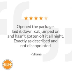 K&H Pet Products Self-Warming Pet Pad is made from unique materials that utilize and absorb your pet’s own body heat to keep her warm. These self-warming materials radiate the heat back to your pet to give her the perfect napping spot. With no electricity required, this pad can be placed on a chair, a bed, pet furniture or you can take it with you on the go! And for your convenience, the pad is completely machine washable. This versatile soft pad is double-sided, so you can choose what color you want on top. Whether you have a small dog or a cat, this self-warming pad is a great way to keep your pet toasty and cozy.