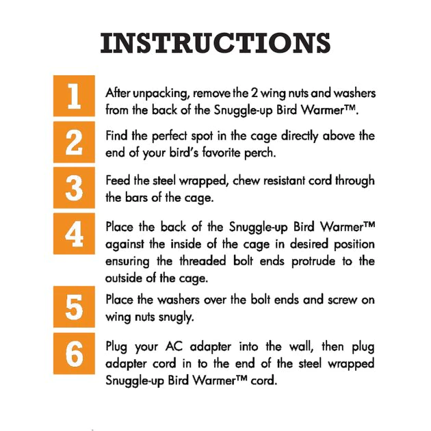 When your feathered friendโs cage gets cool from air conditioning or chilly drafts, the K&H Pet Products Snuggle-Up Bird Warmer can help make it cozier for your pet. This low-voltage cage heater provides a consistent stream of heat for your pal to snuggle up to. It has a built-in thermostat that matches your avian allyโs optimal body temperatureโhelping to reduce stress and improve well-being. This heater doesnโt warm up the entire cageโit just safely produces heat in a small area that your bird can get close to. The innovative, premium creates a cozy and inviting space for your friend!