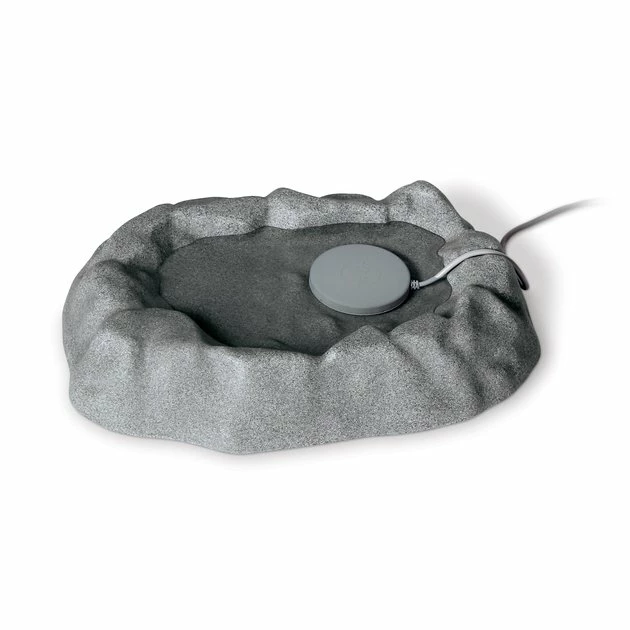 Give your feathered friends a place to bathe year-round with the K&H Pet Products Thermo-Birdbath Heater Outdoor Birdbath. It holds up to a gallon of water and includes a removable 80-watt heater that melts ice and snow in the winter months. Made from durable plastic resin, this birdbath comes in a stone color to match any backyard dΓ©cor with a non-slip surface for easy cleaning. It is also thermostatically controlled to only turn on when needed. Attract more beaked buddies to your backyard with the K&H Pet Products Thermo-Birdbath Heater Outdoor Birdbath.