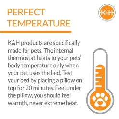 Give your feline pal the beauty sleep he needs while keeping him warm with the K&H Pet Products Thermo-Kitty Cuddle Up. It has a built-in heater inside the super soft, orthopedic foam base and a plush micro-fleece sleeping surface. The heater starts off nice and warm, and when your kitty gets on, it automatically heats up to match his body temperature and keep him purring all night long! Its bolstered, cuddle-friendly design is ideal for adult cats, kittens, and even elderly felines. And when itโs time to clean, simply unzip and machine wash the cover. Plus, itโs eco-friendly since it only uses 4 watts of power to warm up, and includes a convenient cord thatโs MET certified for electrical safety.