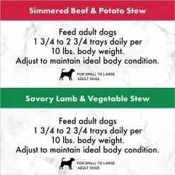 Feed adult dogs 1 3/4 to 2 3/4 trays daily per 10 lbs. body weight.