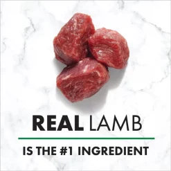 - Real lamb is the very first ingredient, followed by other natural ingredients, vitamins and minerals to help adult dogs stay healthy and strong.
