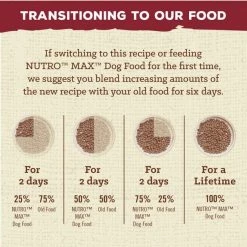 - For 2 days, 25% NUTRO™ MAX™ Dog Food, 75% Old Food