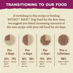 - For 2 days, 50% NUTRO™ MAX™ Dog Food, 50% Old Food