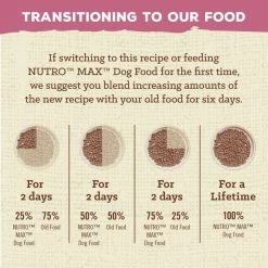 - For 2 days, 50% NUTRO™ MAX™ Dog Food, 50% Old Food