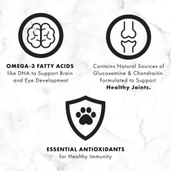 - Features natural sources of glucosamine and chondroitin to support healthy joints.