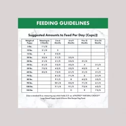 Adjust food to maintain ideal body weight. Always provide fresh drinking water. Puppies: From 3 to 5 weeks of age, moisten food and feed frequently. From 6 weeks of age, feed the suggested amount in three meals per day until 6 months of age, then twice daily until 18 months (24 months for giant size dogs). Gestation/Lactation: During gestation, feed up to 2 times the amount shown for puppies 6 to 9 months. Feed lactating females as much food as they will eat to maintain weight. Amounts will differ depending on litter size.