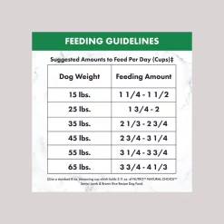 These are the recommended feeding amounts based on the ideal body condition for adult dogs of various weights. Individual dogsโ energy requirements may differ. Adjust the amount fed to obtain or maintain your dogโs optimum weight. Keep fresh drinking water available at all times, provide plenty of exercise and see your veterinarian regularly. Serve dry or lightly moistened.