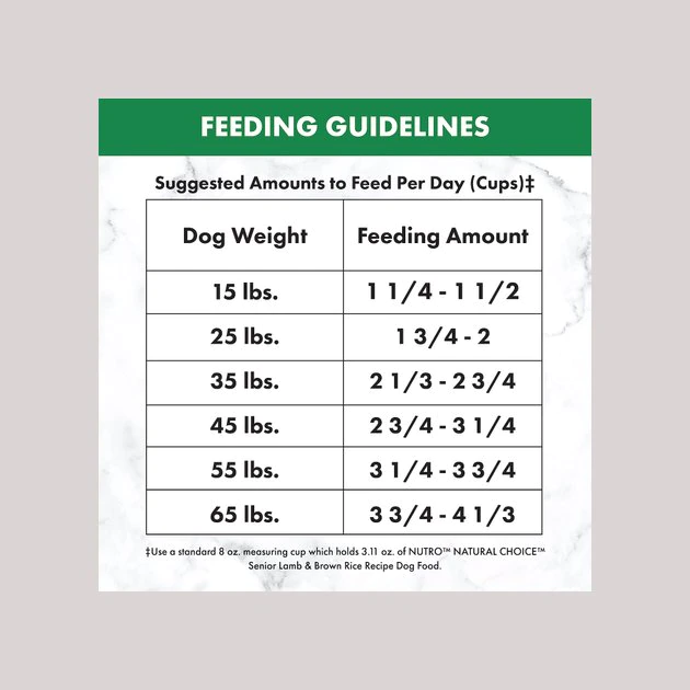 Give your little guy a big dose of natural nutrition Nutro Natural Choice Senior Dry Dog Food, Lamb & Brown Rice Recipe Dog Kibble. This dry dog food is designed with senior dogsโ needs in mind, made with essential antioxidants to support your dogโs immune system. This recipe is made with lamb, providing a high-quality source of protein. Itโs also formulated with calcium to support strong bones and joints and natural fiber to support healthy digestion. You can feel great about this non-GMO food, made with recognizable ingredients and no chicken by-product meal, corn, wheat or soy.