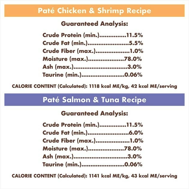 - Variety pack includes six twin-packs of Grain-Free Pate Real Salmon & Tuna Recipe and six twin-packs of Grain-Free Pate Real Chicken & Shrimp Recipe.