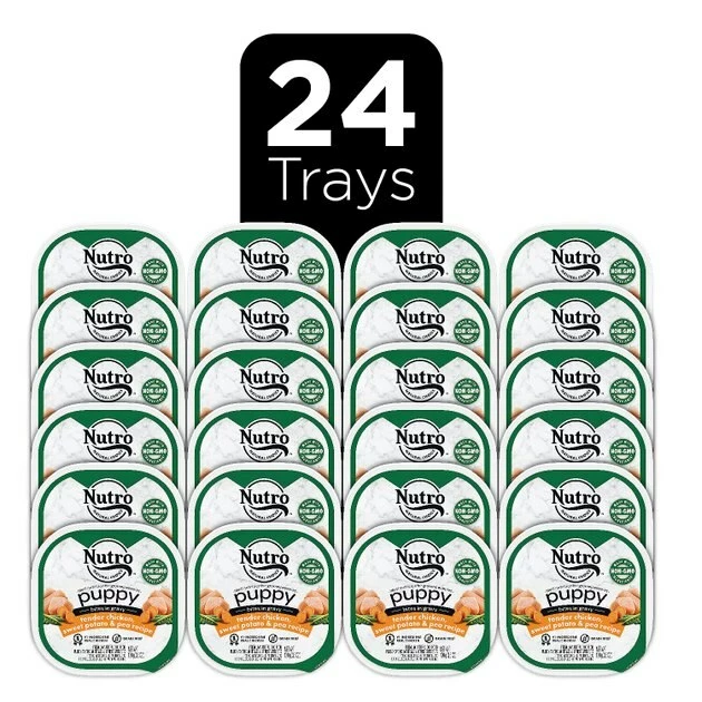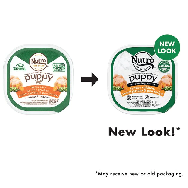 Watch your new pup drool with delight over these Nutro Puppy Tender Chicken, Sweet Potato & Pea Recipe dog food trays. This premium, grain free wet dog food is full of nutrients and flavor that puppies—big and small—go crazy over. Each high-protein meal is balanced with vitamins and minerals and crafted with real chicken as the very first ingredient. Plus, with Nutro, you can feed your pal with confidence knowing that every ingredient is carefully sourced from a trusted network of farmers and suppliers and is 100% free of chicken by-product meal, corn, soy, wheat, artificial colors, flavors or preservatives. Give your pal the nutrition he deserves and the taste he loves with Nutro.