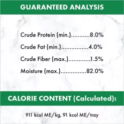 - Premium grain-free wet food contains no chicken by-product meal, corn, soy, wheat, artificial colors, flavors or preservatives.