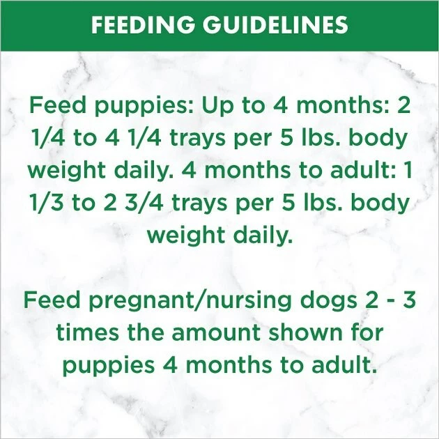Feed Pregnant/Nursing dogs 2 – 3 times the amount shown for puppies 4 months to adult.