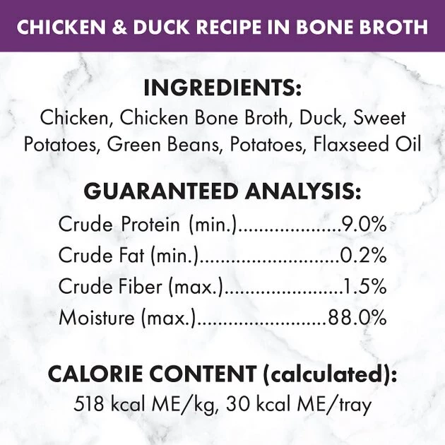 - This variety pack features 2 tasty recipes—Simple Meal Complement Wet Dog Food Chicken and Chicken & Duck Recipes in Bone Broth.