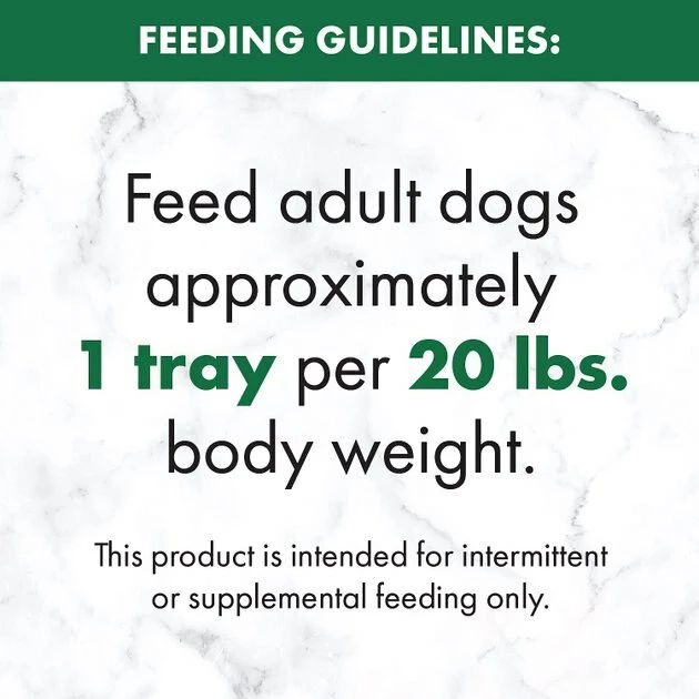 Feed adult dogs approximately 1 tray per 20 lbs. body weight.