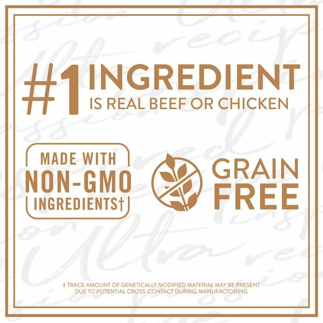 - Real beef or chicken is the first ingredient with real vegetables and herbs in a tasty gravy!