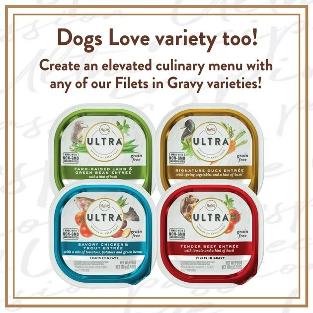 With recipes that will make Fido’s mouth water, Nutro Ultra Grain-Free Filets in Gravy Bistro Mix wet dog food variety pack provides your four-legged friend a tasty meal made from good-for-him ingredients. Each of these food trays features real beef or chicken as the number one ingredient, along with yummy veggies and herbs to add a little extra something for your pup, resulting in a delicious meal that’s rich in nutrients and full of flavor. Made with the highest quality protein and non-GMO ingredients, carefully sourced from a trusted network of farmers and suppliers, this wet dog food is grain-free and contains no chicken by-product meal, corn, wheat, soy, artificial flavors, colors or preservatives.