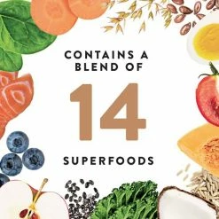 - Contains a blend of 15 superfoods including coconut, chia, kale, and blueberries that promote coat and skin health.