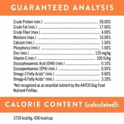 Original: 3706 kcal/kg, 360 kcal/cup