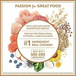 - Superfood blend includes 3 lean animal proteins from farm-raised chicken, pasture-fed lamb and salmon.